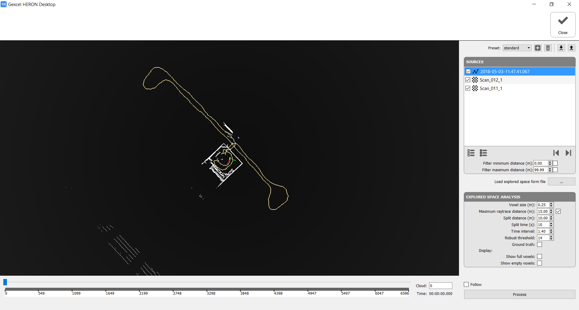 For what that concern the Heron® tracklets a filter in minimum and maximum distance is applicable, as well as for a selection of the point cloud to process by defining the starting and ending positions.