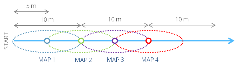For example, by using the standard preset 10 meters, the Map Length is 10 m and the Number of overlapping maps is 1, that means: