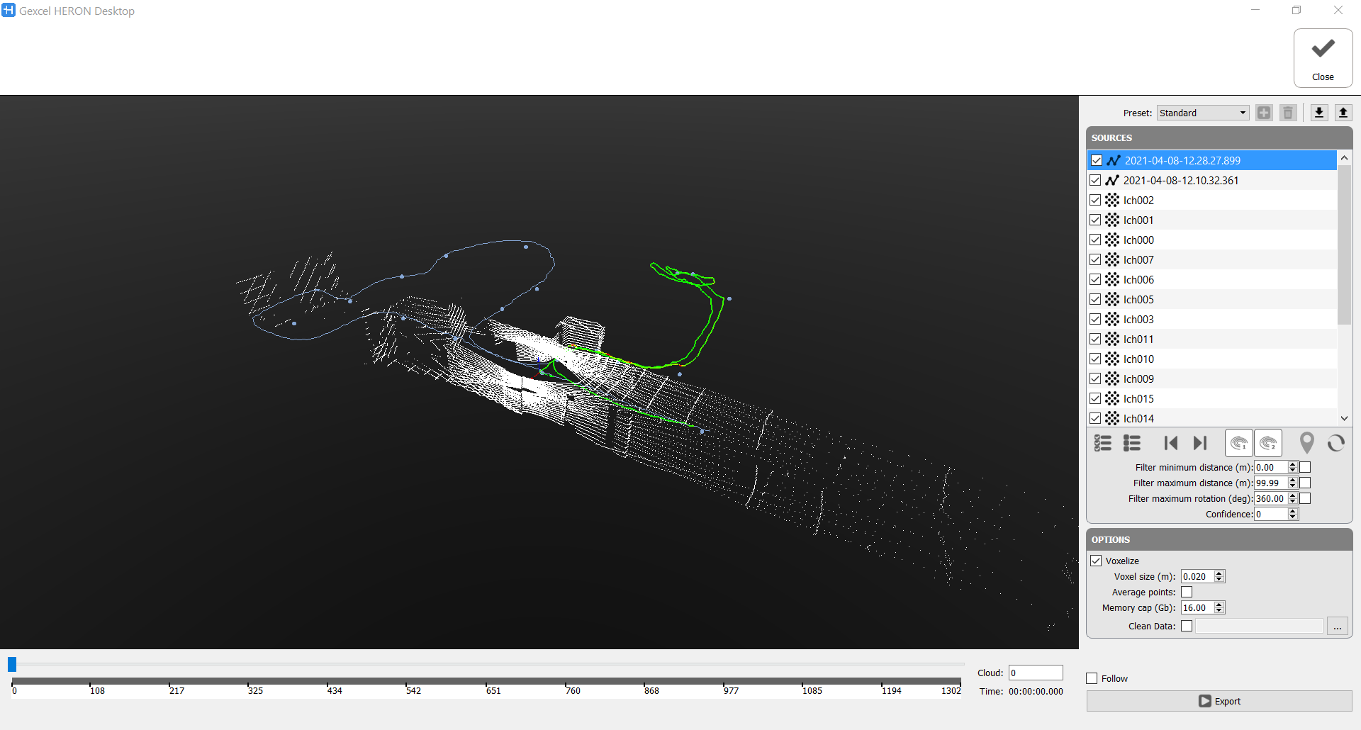 Toggle Cloud Export Panel To export acquisitions (also only portions of them) starting from the single turn of the Velodyne sensor. You can choose to export the clouds without subsampling them or subsampling them in different ways: