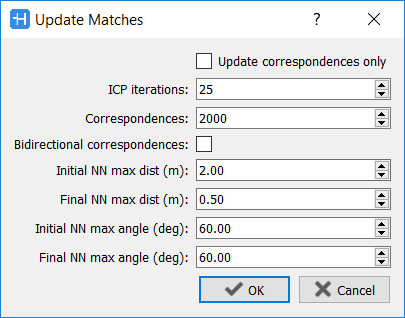 Update Matches [Ctrl+U] To update the ICP process inside matches, according to new parameters settings.