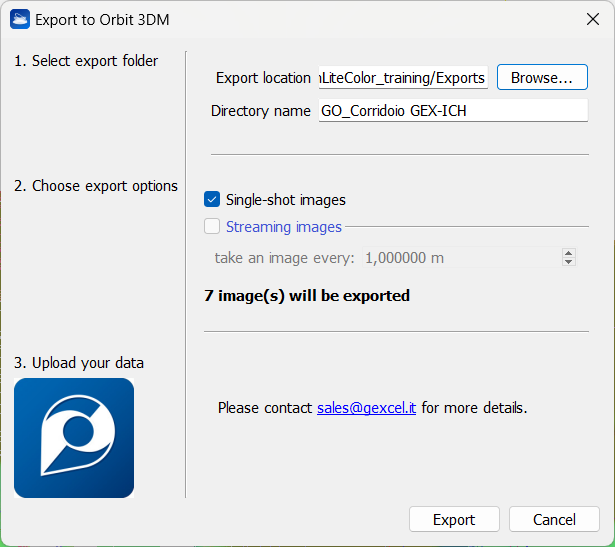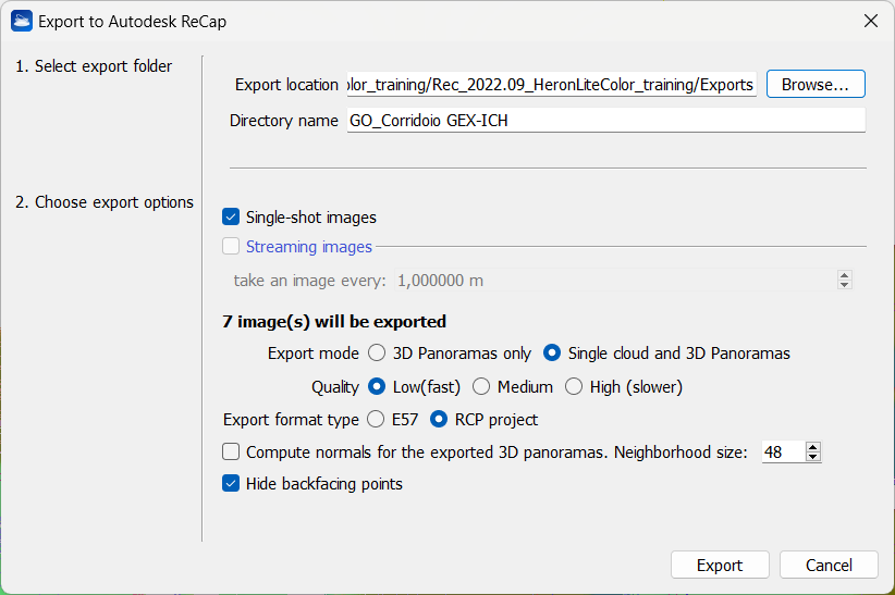 - In the same way, flag Streaming images to use FullHD panoramas acquired in continuous to extract a discrete number of panoramic views (setting their distance along the trajectory with "take an image every: ...") and create colored structured clouds. This option is available only for data from HERON® MS Twin and AC-2 Color series and it is disabled for HERON® LITE data.