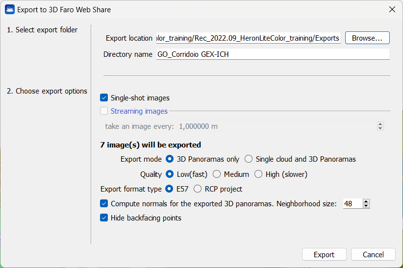 - Flag Compute normals for the exported 3D panoramas to recompute the normals in the point clouds, according to the panorama's center of view.