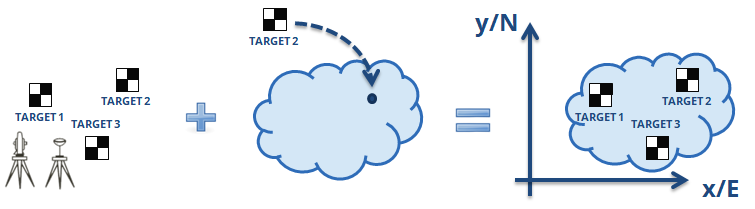 If pole tags are used, the positions of the targets are already located (on the ground control points), otherwise a refinement of the correct position of the targets (which can be flat or spherical and defined by fitting the point cloud) is necessary, because the tags are positioned in the center of the laser head.