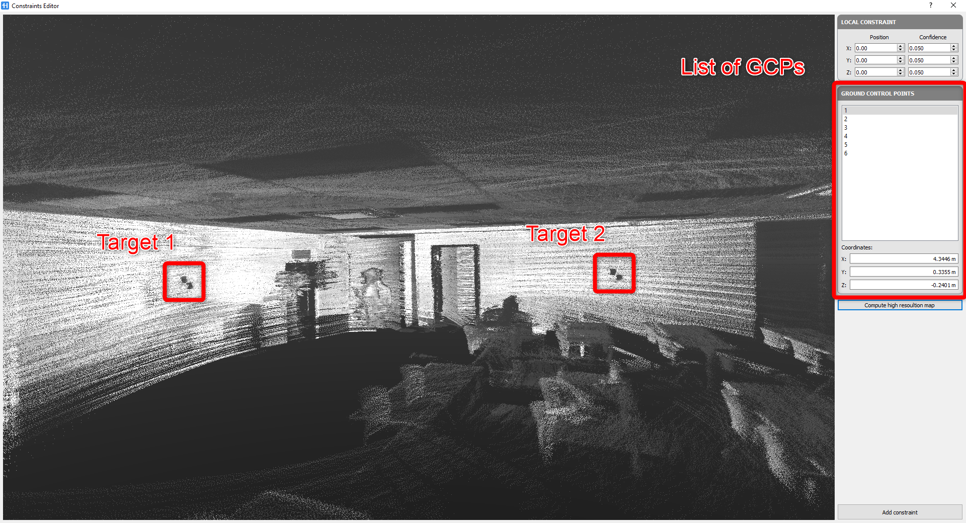 Targets acquired by HERON® on the point clouds will be integrated with their coordinates acquired by RTK, GNSS or Total station with very high level of accuracy and processed with HERON® data in Global Optimization process in order to: