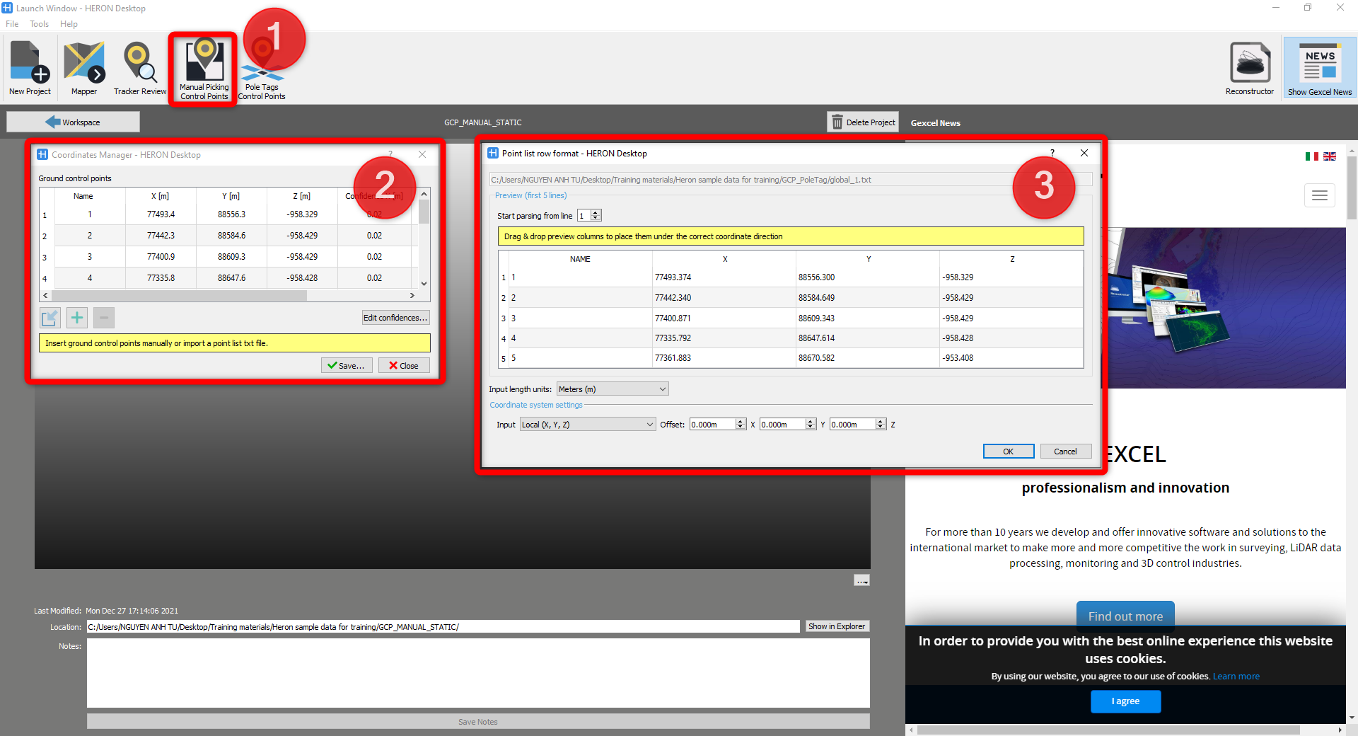 So, in HERON Desktop, the function can be found right here when accessing to the HERON® project: Manual Picking Points function to use targets as constraint to the HERON® data.