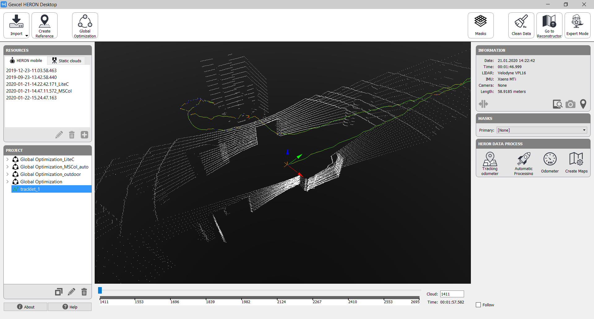 - process the acquisitions in order to create complete and optimized point clouds (global maps)