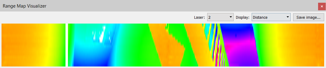 The range map visualizer will appear, displaying he sensor view in Distance or Reflectance colorization. - Move the time cursor in order to find a view that better help you to detect the area you want to remove by the mask.
