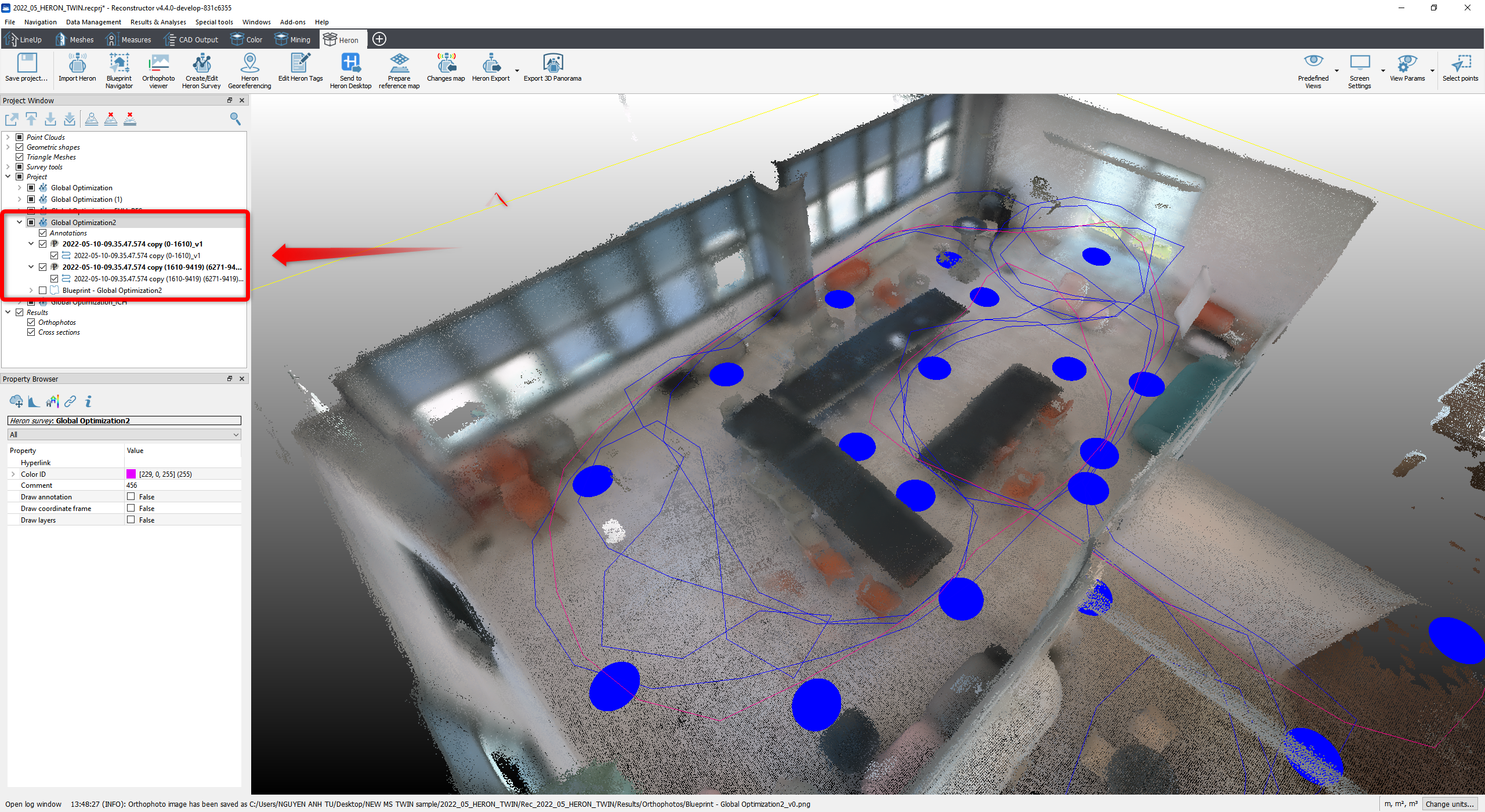 - A general Blueprint covering the area of the 2 (or more) points clouds