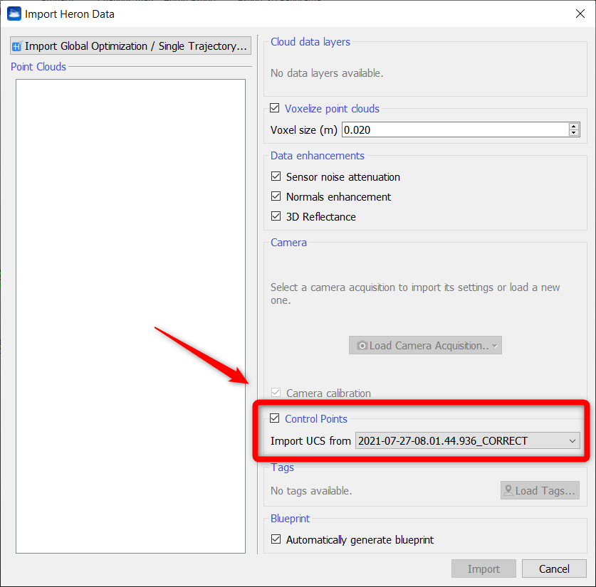Notice that, when importing this data to Reconstructor®, in Import Heron Data window, Control Points option should be checked; from the drop-down list of Import UCS from, the correct constraint file for the project should be selected.