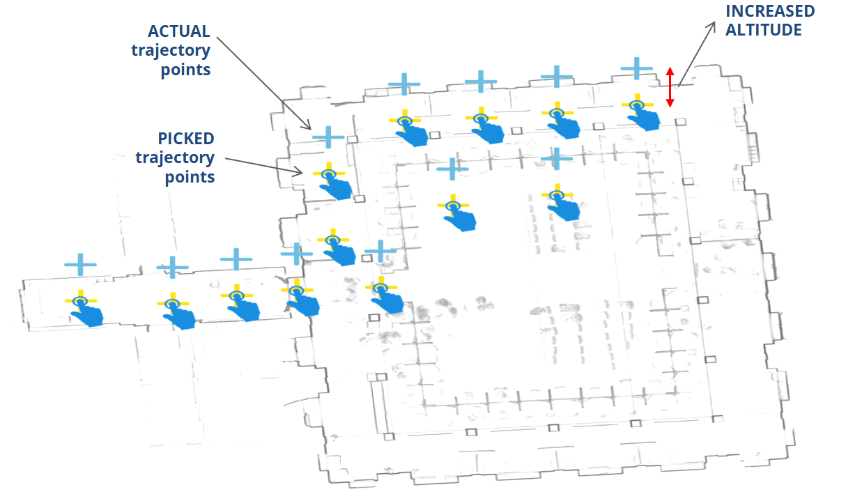 By double-clicking in the 3D scene it's possible to annotate the trajectory points on the cloud. It is warmly suggested to pick these points on the ground, but the trajectory, commonly defined by the central position of the sensor head, is not on the ground; it is so necessary to translate these points along the vertical direction.