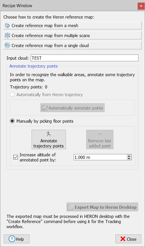 - Automatically from Heron trajectory, if a point cloud from a Heron Survey is used as input