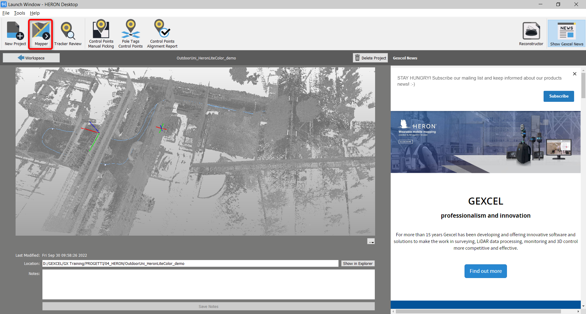 In a new Heron Desktop project, click on Mapper to start/continue data post processing.