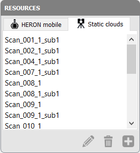At the end of the Reconstructor® process a list of static clouds is (automatically) displayed in the Resources/Static clouds tab. |