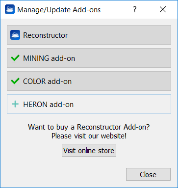 More details about the complete list of functions for each add-on are available in the Reconstructor comparative table.