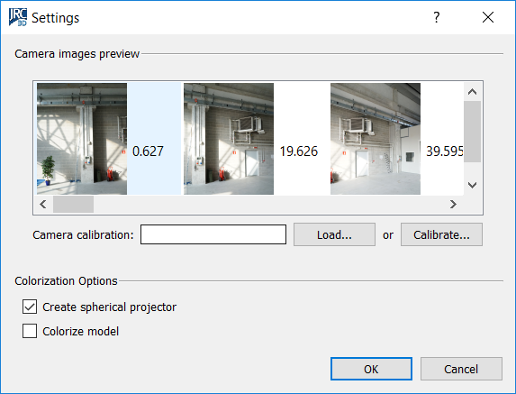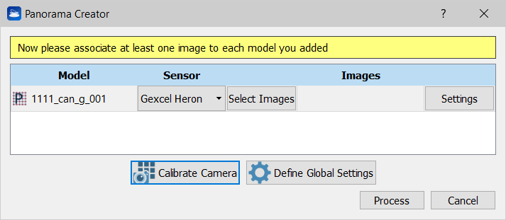 Create Panorama tool creates and associates a panoramic spherical projector to a point cloud (both structured and unstructured), by calibrating a series of perspective images on the point cloud.