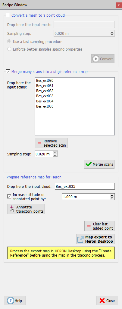 Select this tool to generate a point cloud model to be used as Reference Map in Heron® Desktop, starting from any 3D model loaded in a Reconstructor® project. |