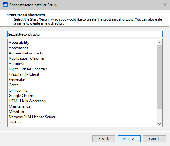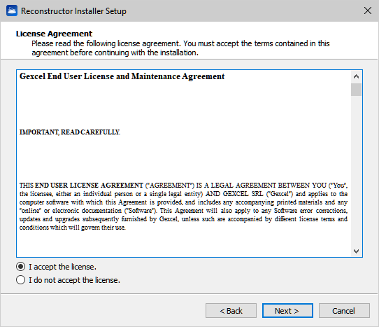 - Choose Install Location (Default path is C:\Program Files\Gexcel\Reconstructor).