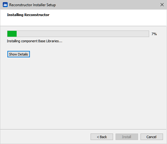 - The Reconstructor Setup Wizard starts, press Next to continue...