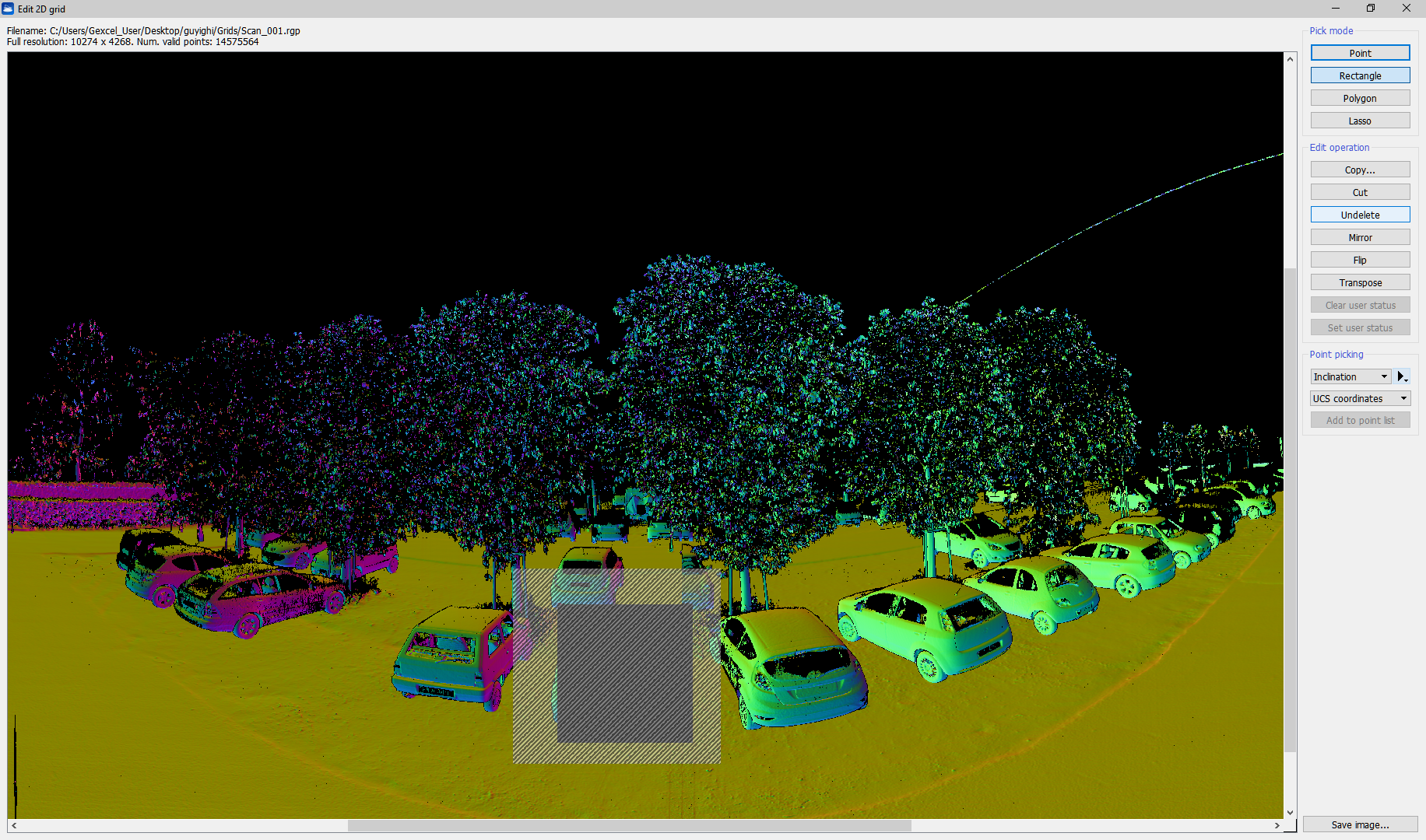 If you want to undelete only the points in a defined area, the 2D edit it's the right way. It runs only for Grid point clouds. |