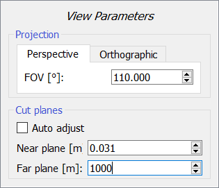 Near plane: distance of near clipping plane in meters. Specifies the minimum rendered depth. In perspective mode only values greater than zero are allowed.