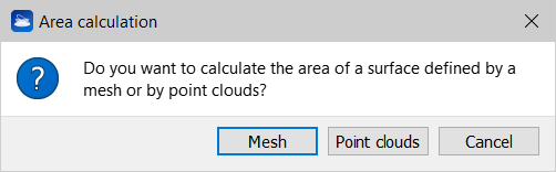When you press the Area button you can choose if you want to compute an area defined by a mesh (1) or by a point cloud (2).