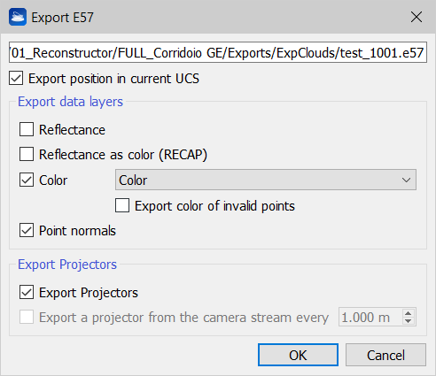 - Export Projectors: by flagging this option you can export panoramic projectors that are "children" of the point cloud, as equirectangular 2D image embedded in the .e57 point cloud, keeping the same relative position cloud-camera as in the Reconstructor project.