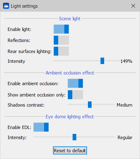 The 3D visualization of point clouds and meshes can be modified changing the Light effects settings.