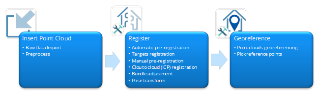 Cloud-to-cloud (and mesh) registration To register the imported scans. This command includes both pre-registration process and fine registration |