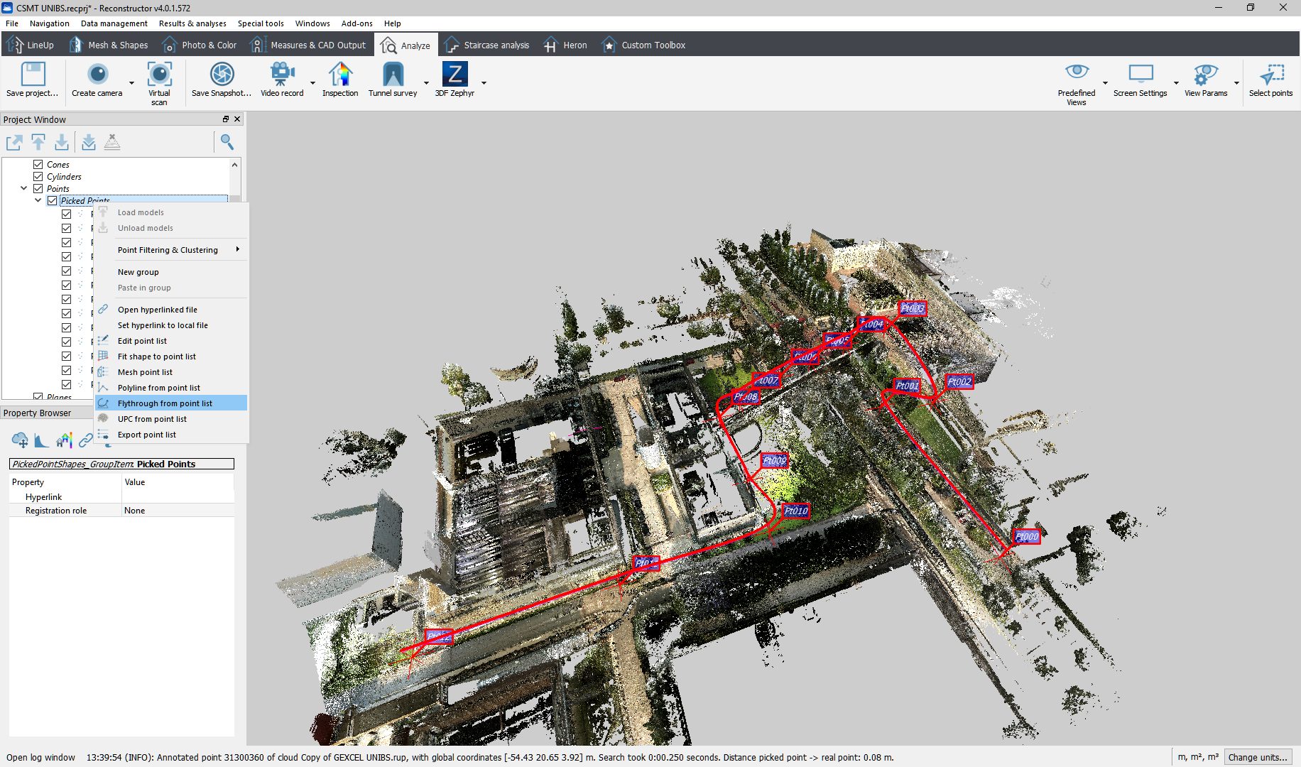 It creates a flythrough by interpolating a spline through points and saves it in the project under the name “flythrough from point list”.