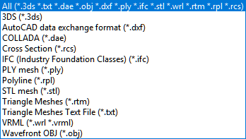 Reconstructor can import various type of mesh files; below all of them are listed. |
