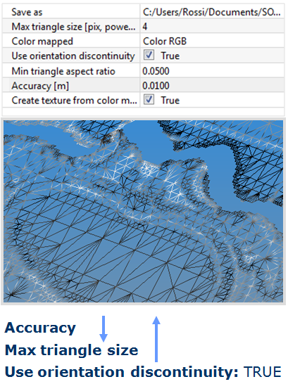 Accuracy [m]: max approximation error of the mesh. The higher the value, the lesser triangles you have.