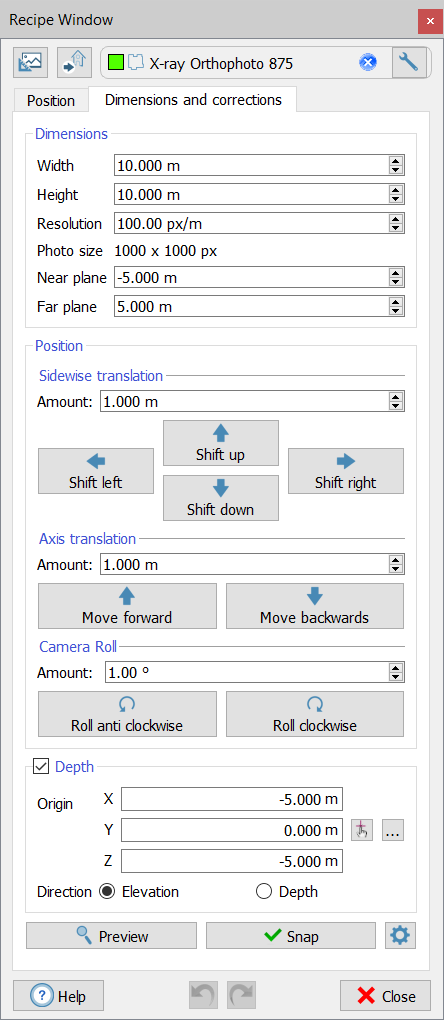 X-Ray Orthophoto settings