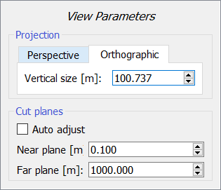 In orthographic mode, you see the 3D scene through an orthographic projection, and you can specify the “vertical size” in meters of your projection.