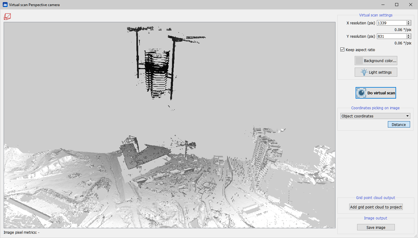 Add grid point cloud to project: creates a grid point cloud from the current virtual scanned color and depth. The model is automatically added to the project.