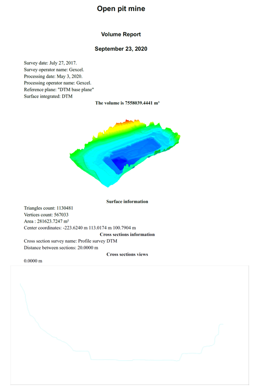 The volume is .... m³ (computed volume between mesh model and reference surface)